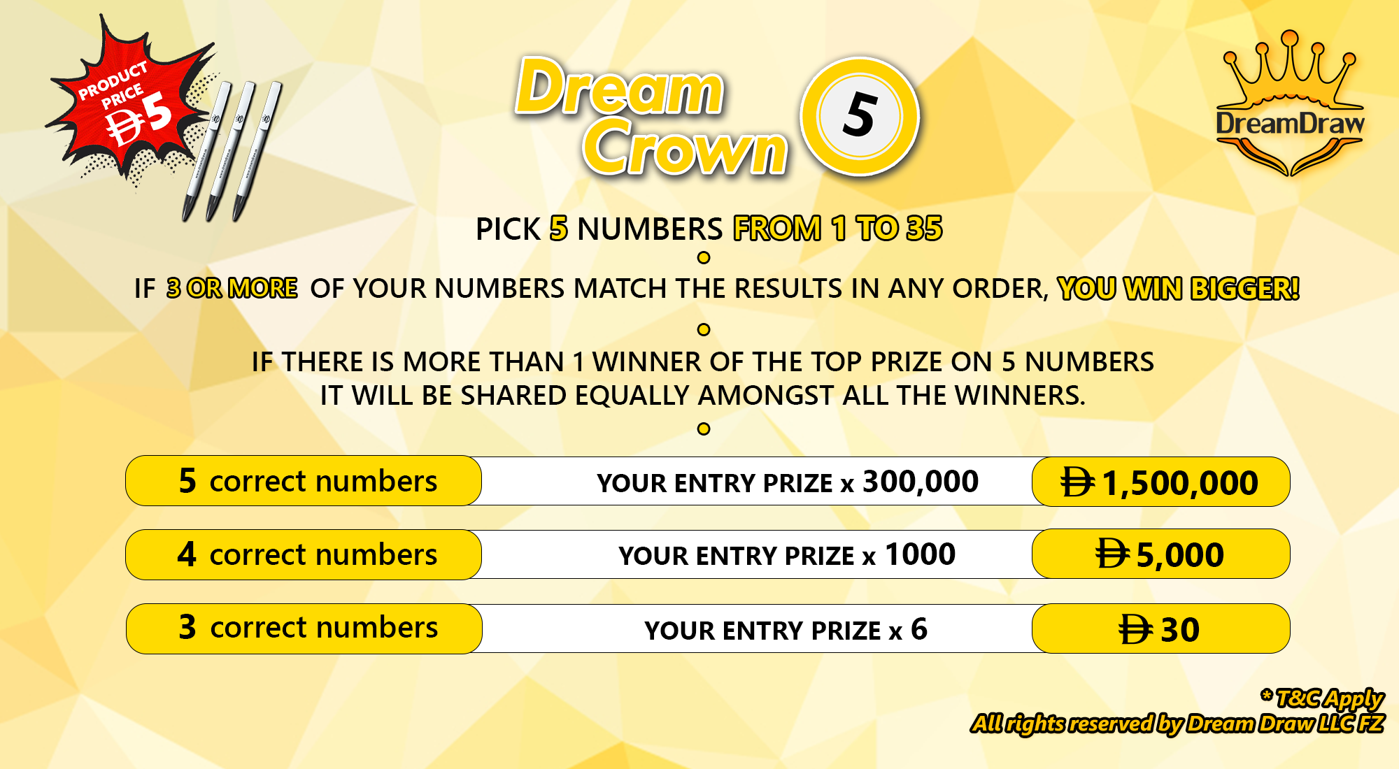 • Example: 5 x 1000 = AED 5000 for the Golden number.